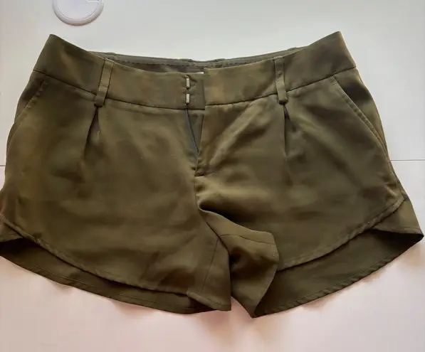 Keywords: Alice and Olivia, High Waist Shorts, Tulip Hem, Pleated Shorts, Olive Green Shorts, Womens Shorts, Size 4, Designer Shorts, Dress Shorts, Party Shorts, Casual Shorts