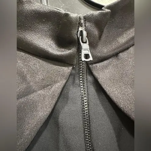 Features high neckline, cut-out shoulders, ruffled details, and exposed back zip. Fiber Content: 10... Show more