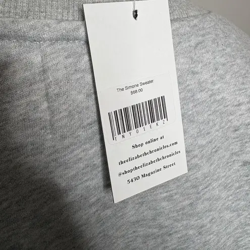 The Elizabeth Chronicles All Row The Simone Sweater Grey Gray Pullover Crewneck Sweatshirt Size Small. New. NWT. Pull over. V detailing. 100 % cotton. Approx measurements laying flat: Pit to Pit 22" Length 22.5"