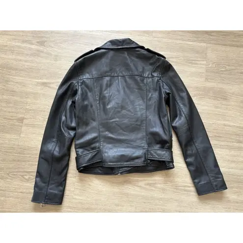 AllSaints Womens sheep Leather Biker Jacket Black Moto All Saints Belted 100% Sheep leather size: UK 8 US 4 EU36 Pit to pit: 17.5 inches Preowned in excellent condition. Care Label has been removed.