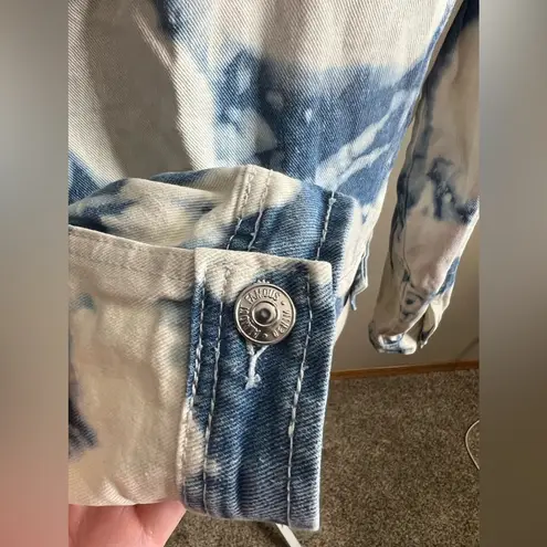 Almost famous Bleached distressed denim jean jacket Size medium 90% cotton 10% polyester Full butto... Show more
