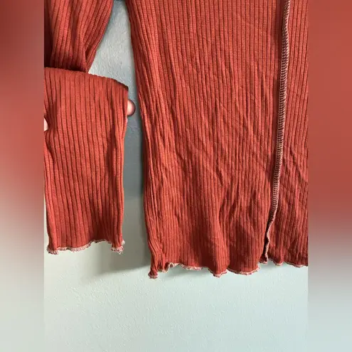 Stylish terracotta blouse with ribbed texture. Features long sleeves and a chic design.
