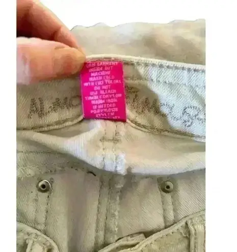 Super cute Almost Famous white jeans with an eyelet roll-up hem. Inseam is 29 when folded. Stitching... Show more