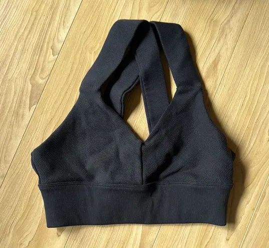Experience comfort and style with this sleek black sports bra. Perfect for workouts or casual wear.