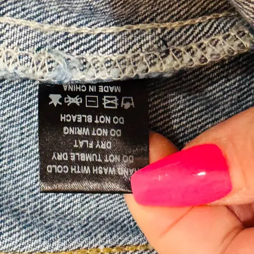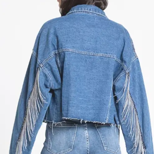 ⭐️NWOT⭐️ Altar’d State Chain Fringe Cropped Denim Jacket Size S/M Color: The jacket is an Indigo/d... Show more