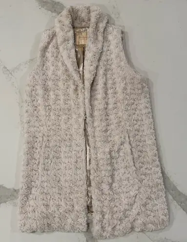 Altar’d State Plush Faux Fur Long Vest Women’s Size Small Cream Textured - Lined - Pockets In goo... Show more