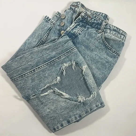 Button Fly High Rise 31” inseam Size 24 Hole in one leg 100% Cotton