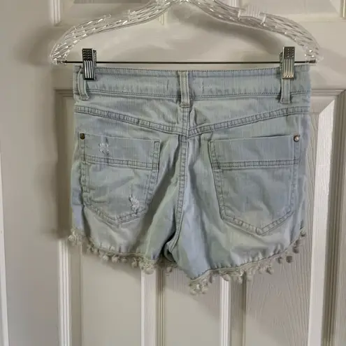 Altered State Light Wash Pom Trim Distressed Denim Shorts size 28/7. Pre-owned, condition. Button/zi... Show more