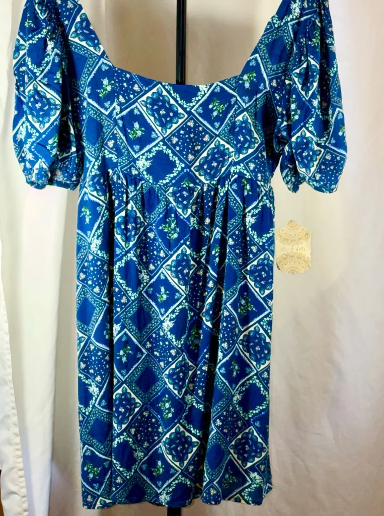 Altar'd State Blue and White Patterned Midi Dress Backless Runched Sleeve Sz L Size L - $36 (59% Off Retail) New With Tags - From Lori