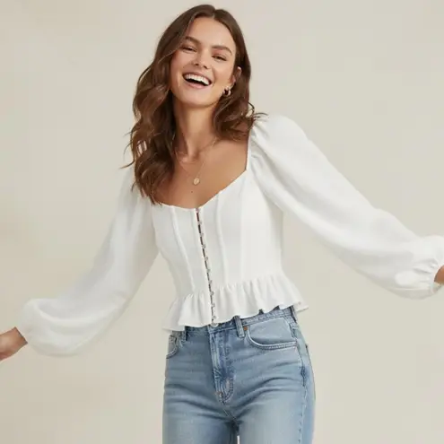 New with tags and no flaws. This elegant white off-shoulder top is perfect for any occasion. Its st... Show more