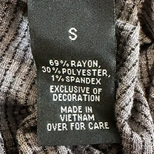 This Alyx blouse is a stylish and versatile piece for women, featuring a round neck with a side knot closure and crochet accents. The 3/4 bell sleeves add a bohemian touch to the overall casual look, perfect for travel, business, or everyday wear. Made from a knit fabric with a heathered pattern in grey and white colors, this blouse offers a classic fit and comfortable stretch, making it suitable for various occasions in fall, winter, and spring. New with tags. From a smoke & pet free home. Approximate flat lay measurements bust 18 inches body length top 25 inches. SKU location W71