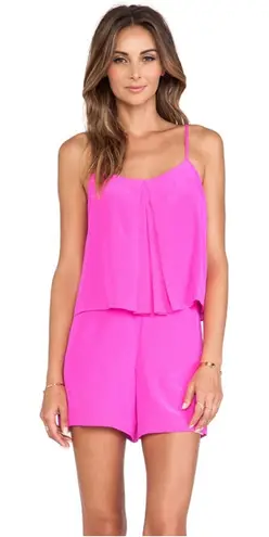 Amanda Uprichard Silk Hot Pink Romper Size Medium Hot Pink Adjustable straps Flowy Keyhole back... Show more