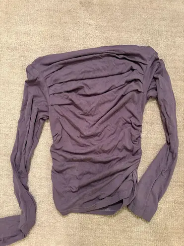 Slightly off the shoulder Ruching for a flattering fit Great with low waisted pants! Grayish color