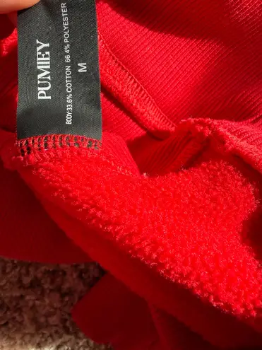 Never worn red hoodie, super soft with cuff waistband and cuffs, oversized fit M/L