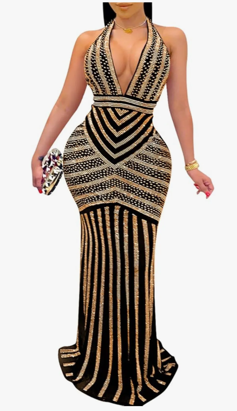 Black and gold sequin halter dress Size XL - $42 - From Kaila
