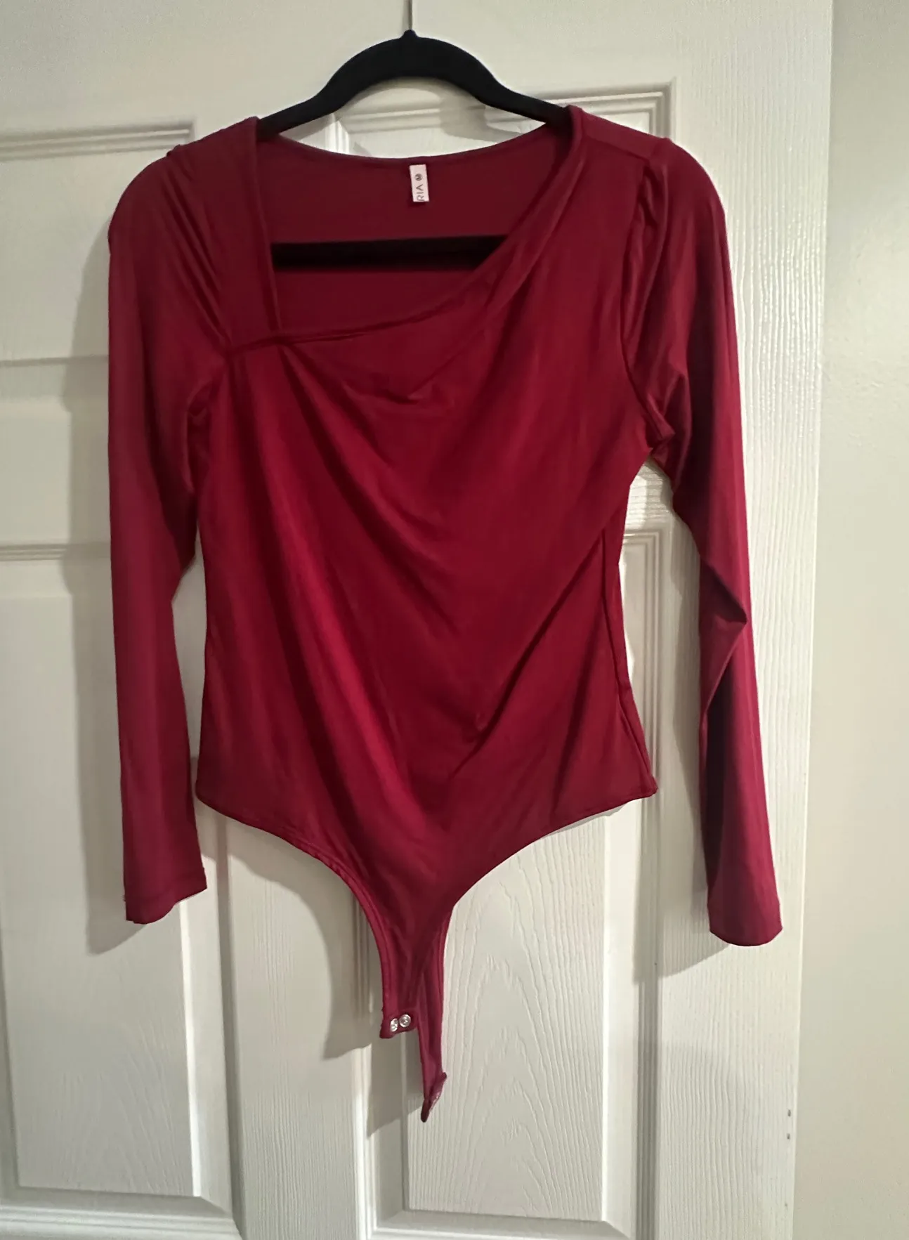 Reoria Asymmetrical Maroon Bodysuit Red Size M - $8 - From Abby