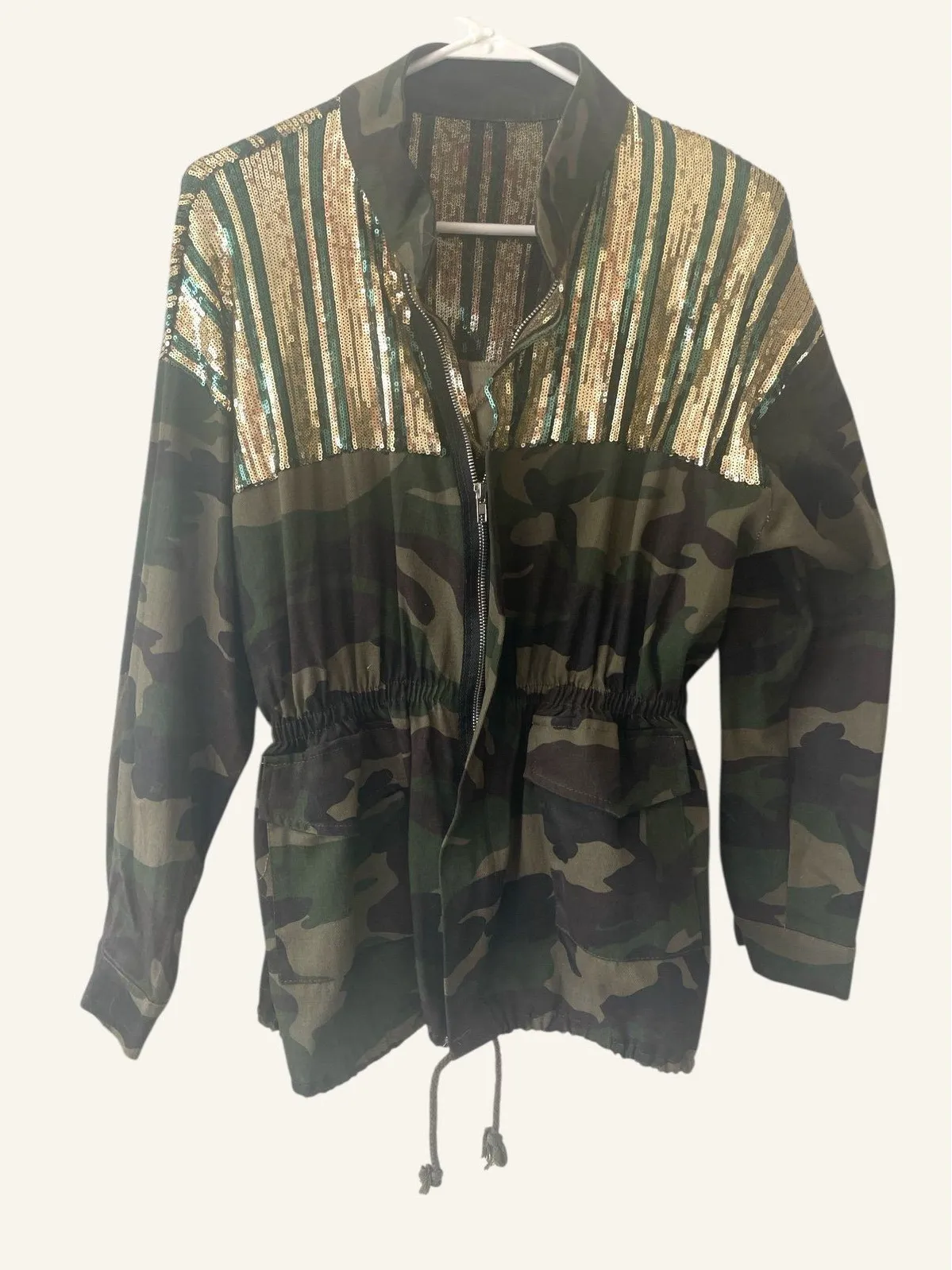 About this item ✔Ladies long sleeve slim coat casual sequins stitching camouflage jeans jacket Sprin... Show more