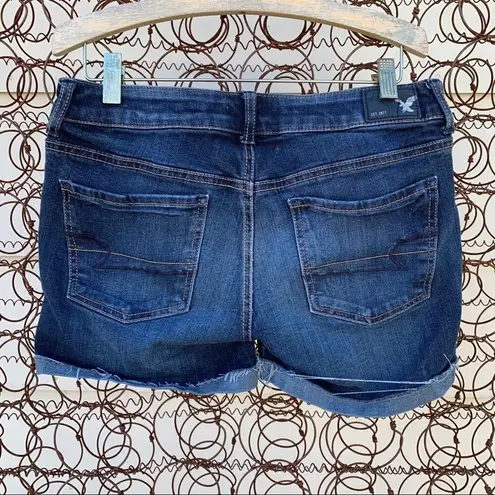 American Eagle Outfitters MIDI jean shorts with frayed roll hem Super Stretch Size 4