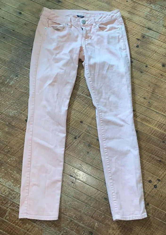 American Eagle blush, barbiecore, normcore, skinny jeans. Pairs well with a basic tee or flowy blous... Show more