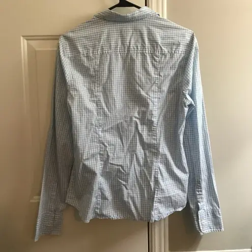 Like new American Eagle button up top. Cute barely worn button up top that is light blue plaid. Size... Show more