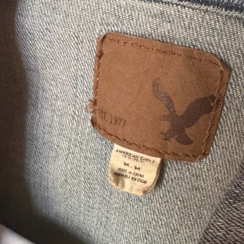 Denim vest with a brown leather patch. Features a classic eagle logo.