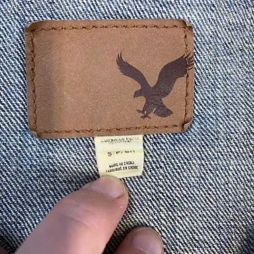 Oversized denim jacket with large unique lion painting on back! Minor cracking on painting but overa... Show more