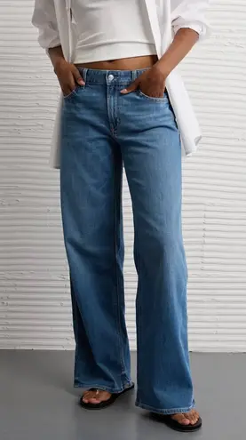 Stylish blue flare jeans. Comfortable fit. Perfect for casual wear. Size 14 Waist 19” Rise 12” Lengt... Show more