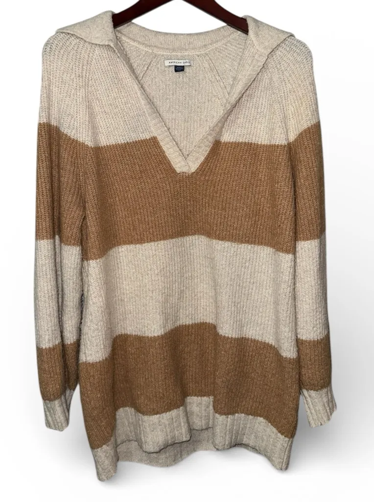 Stay cozy and stylish with this striped V-neck sweater. Featuring a chic cream and brown color combi... Show more