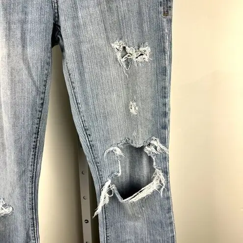 Add vintage-inspired edge to your denim collection with these American Eagle "True Boot" jeans in a rare 4 X-Long inseam. Featuring a flattering bootcut leg, heavy distressing throughout, and a frayed raw hem, these jeans bring bold Y2K, grunge, and indie energy to any outfit. Crafted from 100% cotton with no stretch for a true vintage fit. Interior bandana-style waistband lining. Perfect for tall frames or for that dramatic stacked look with boots or sneakers. Size 4 X-Long (measured flat: 15” waist, 8” rise, 30” inseam, 8.25” leg opening). Condition: Worn-in condition with intentional distressing - destroyed look with large holes, fading, raw hems etc. Material: 100% cotton Made in China Machine wash cold Tag: American Eagle | True Boot | 4 X-Long Keywords: Y2K, bootcut jeans, grunge, festival fashion, vintage style, American Eagle, tall jeans, long inseam, 2000s style, rugged denim, distressed denim, faded wash, raw hem