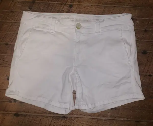 American Eagle white, vacationcore, stretchy, denim, midi shorts. Pairs well with a flowy blouse or... Show more