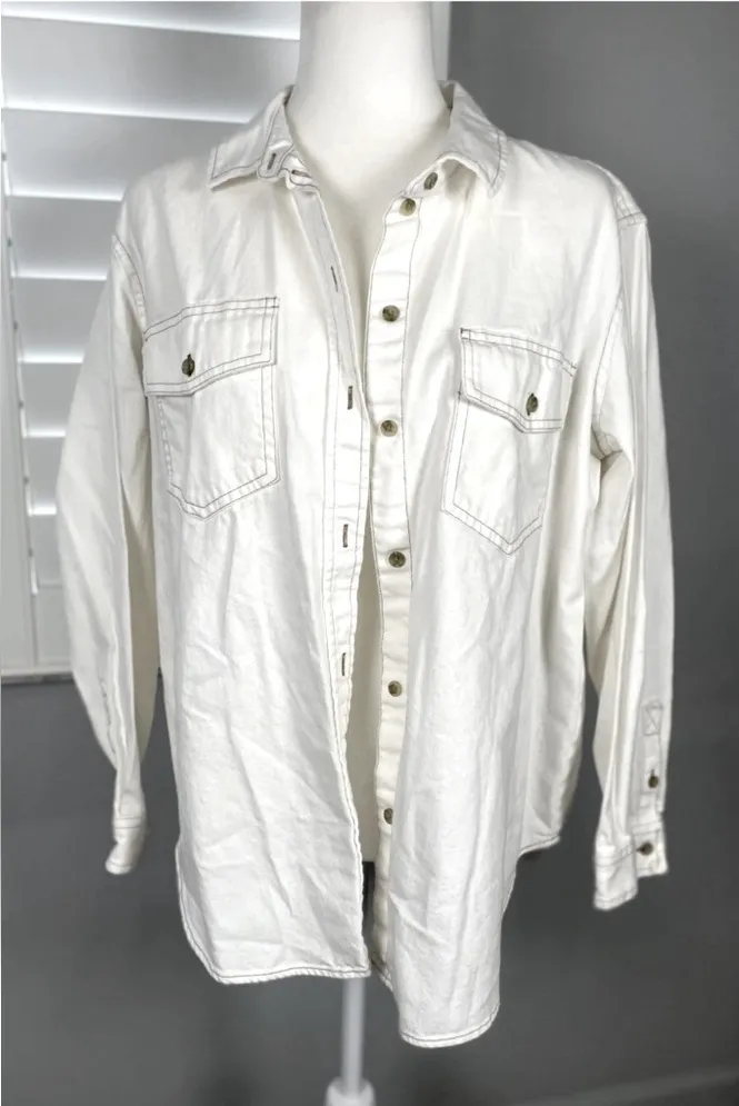 American Eagle Woman’s M Shacket Oversized Off White Denim button down Shirt Euc See photos for d... Show more
