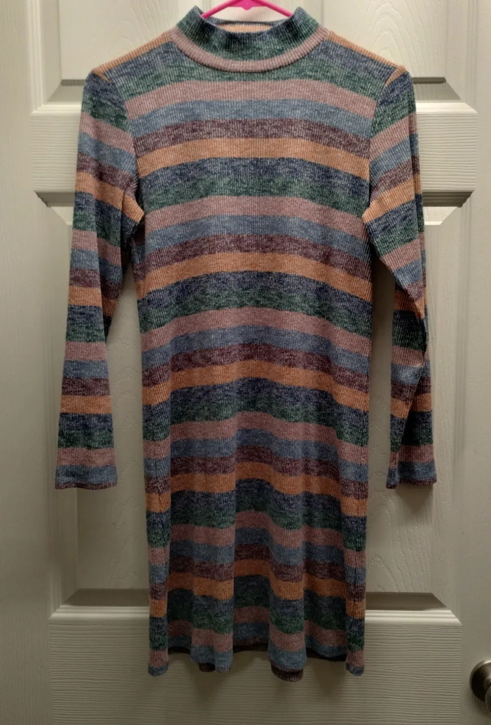 American Eagle Women's Size Medium Multicolor Muted Striped Long Sleeve Mini Dress - Mock Neck - Rib... Show more