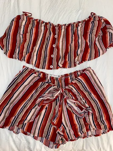 Striped 2 piece Set!! Cute shorts and bandeau top. I put it in the dryer a couple of times so shrunk... Show more