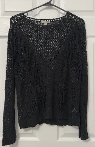 Stylish black sweater by Amuse Society. Features open-knit design. Perfect for layering.