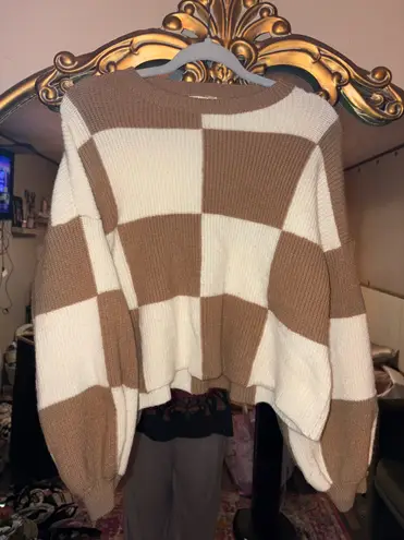 Cropped Checkered Sweater Brown Size M - $20 - From Kaley