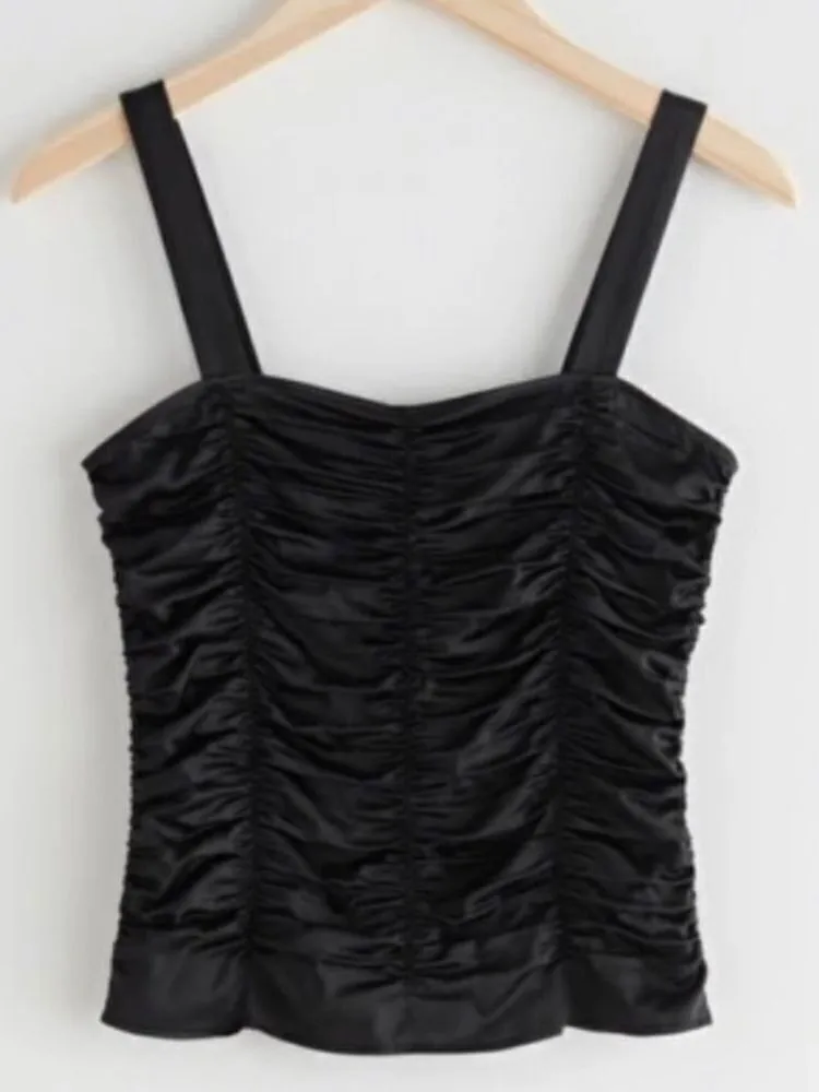& Other Stories- Gathered Ruched Black Strap Top Size 2 Great condition. No rips, stains or flaws.... Show more