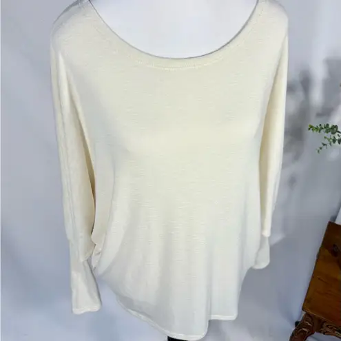 Elegant and effortlessly stylish, this Andree by Unit top features soft cream fabric with a subtle slub texture. The standout detail is the batwing dolman sleeves that create a beautifully draped silhouette, giving it a relaxed yet chic look. The boat neckline adds a touch of refinement, making this an easy piece to dress up or down. • Brand: Andree by Unit • Color: Cream / Off-white • Dolman batwing sleeves • Boat neckline • Slub knit fabric • Pullover style • Lightweight and comfortable • Excellent, like new, preowned condition Measurements laying flat: Arm pit to arm pit-27” Length-28” minimalist, boho, soft dressing, casual chic, romantic, modern classic, capsule wardrobe, elevated basics, layering piece Andree by Unit, cream top, batwing sleeves, dolman sleeve blouse, slub knit, minimalist top, boho chic blouse, casual pullover, soft knit top, boat neck shirt, relaxed fit, cream neutral top, layering basic, elegant casual top