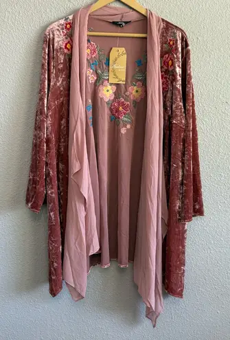 Andree by Unit Crushed Velvet Embroidered Kimono/Open Cardigan‎ Size 2X NWT Pink - $50 New With Tags - From Karla