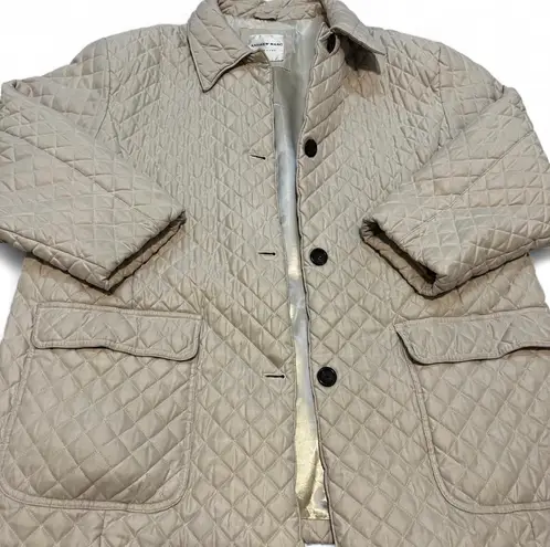 The perfect lightweight layer for when you're on the go! XL Cream colored quilted jacket with two handy pockets. • 33 1/2" length / 29” Pit to Pit • Front pockets • Lined, with 100% polyester fill • 100% polyester • 22” Sleeves • Button Closures • Machine wash, tumble dry • Only press with cool iron when needed cream quilted jacket, lightweight outerwear, cozy layering piece, padded jacket, pocketed coat, travel-friendly jacket, chic outer layer, casual quilted, insulated weatherwear, button-up jacket Tan - $45 (69% Off Retail) - From Shannon