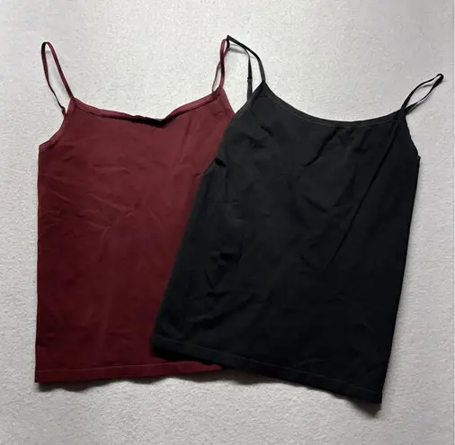 The product is a set of two Ann Taylor black maroon women's camisole tank tops in size medium. These... Show more