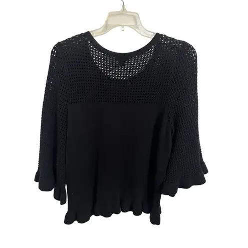 Black Sheer Open Knit 3/4 Bell Sleeve Sweater Size Large Whimsigoth Fairy Grunge Dark Romance Gothic... Show more