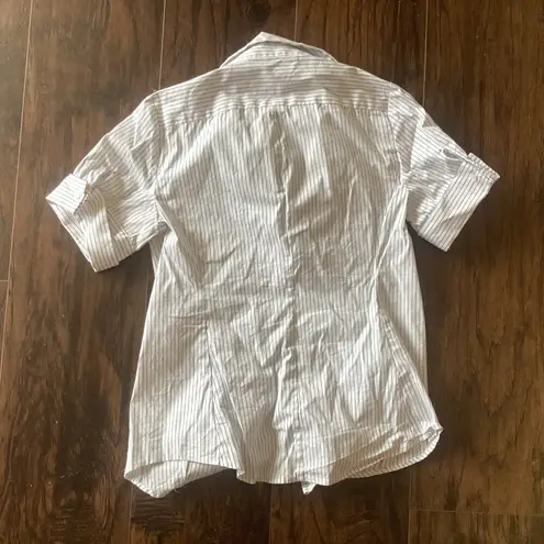 Blue vertical stripes button down blouse with short cuffed sleeves by Ann Taylor in good preowned co... Show more