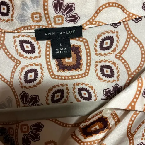 This stylish top from Ann Taylor showcases a notched collar and cuffed sleeves, designed in a chic c... Show more