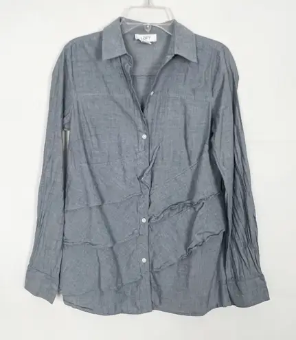 Ann Taylor Loft women's shirt in blue gray. Collared. V-neck. Button down. Long sleeves. Buttoned cu... Show more