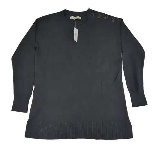 NWT Loft Button Shoulder Tunic Black Crewneck Sweater Women's Size XS Button Shoulder Cotton Stretch... Show more