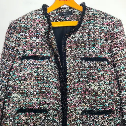 Ann Taylor Tweed Multicolor Sequin Shimmer Open Front Fringe Jacket Blazer 12 Good pre-owned condit... Show more