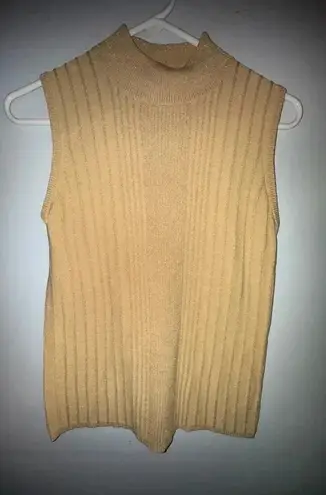 Beautiful, ribbed, sleeveless, mock turtle size medium, no signs of stains, rips, or tears pit to pit about 17 inches bottom of collar to hem about 21 inches mid shoulder to bottom of sleeve about 7 inches