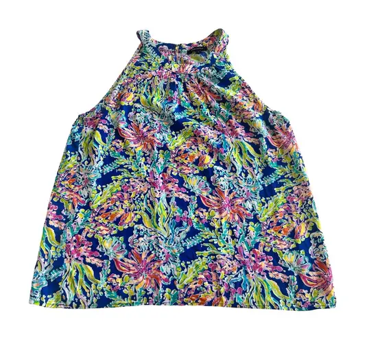 ANNE CARSON Woman’s Large tropical Coral Colorful Summer Halter‎ Top Blue - $25 - From Sam