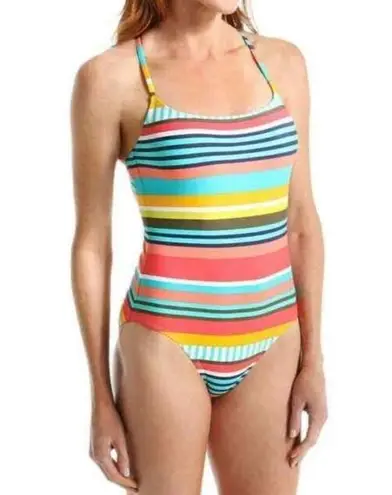 Striped Swimsuit plus size 16 lace up back adjustable Orange - $14 - From Shawnda