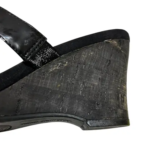 Anne Klein Shoes Womens 8M Black Wedge Patent Slip On Chain Detail Open Toe Condition: Please review... Show more